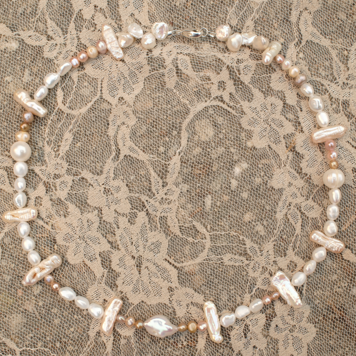 freshwater pearls, keishi pearls, peach fresh water pearls, sterling silver hardware